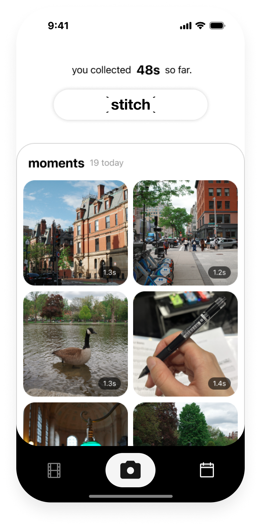 for moments, not masterpieces. capturing your day shouldn’t feel like work.record moments and stitch your day into a mini-vlog. ✉️ get updates on our progress